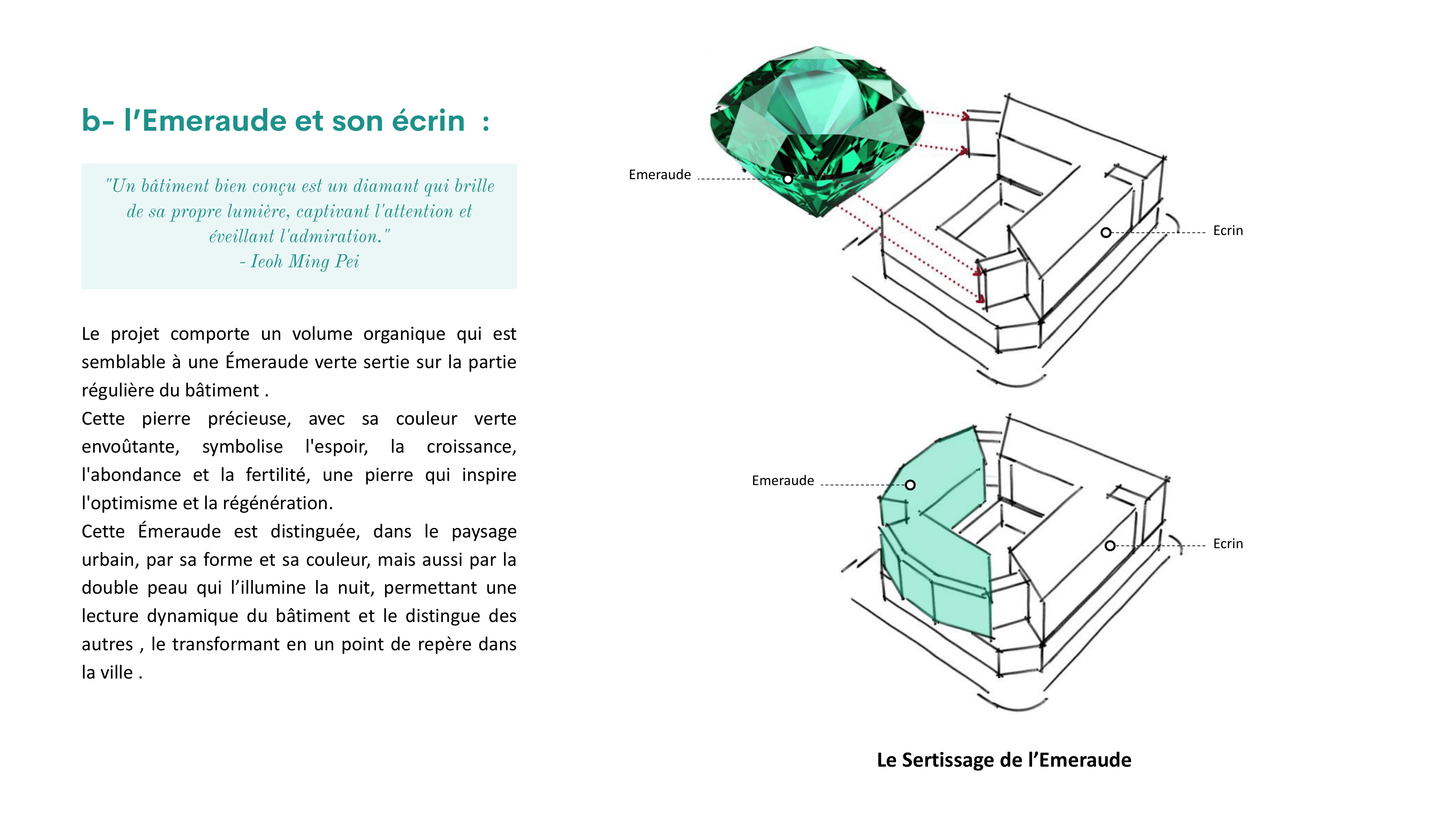 Ce projet s’inscrit dans le cadre d’un concours national à deux degrés pour la conception du nouveau siège de la banque UBCI, un bâtiment de 18 000 m² conçu pour accueillir 1 040 personnes. Situé à La Perle du Lac, un quartier en plein essor dans la nouvelle ville de Tunis, ce projet s’intègre dans un environnement urbain moderne, caractérisé par une architecture contemporaine et une planification axée sur le développement durable.