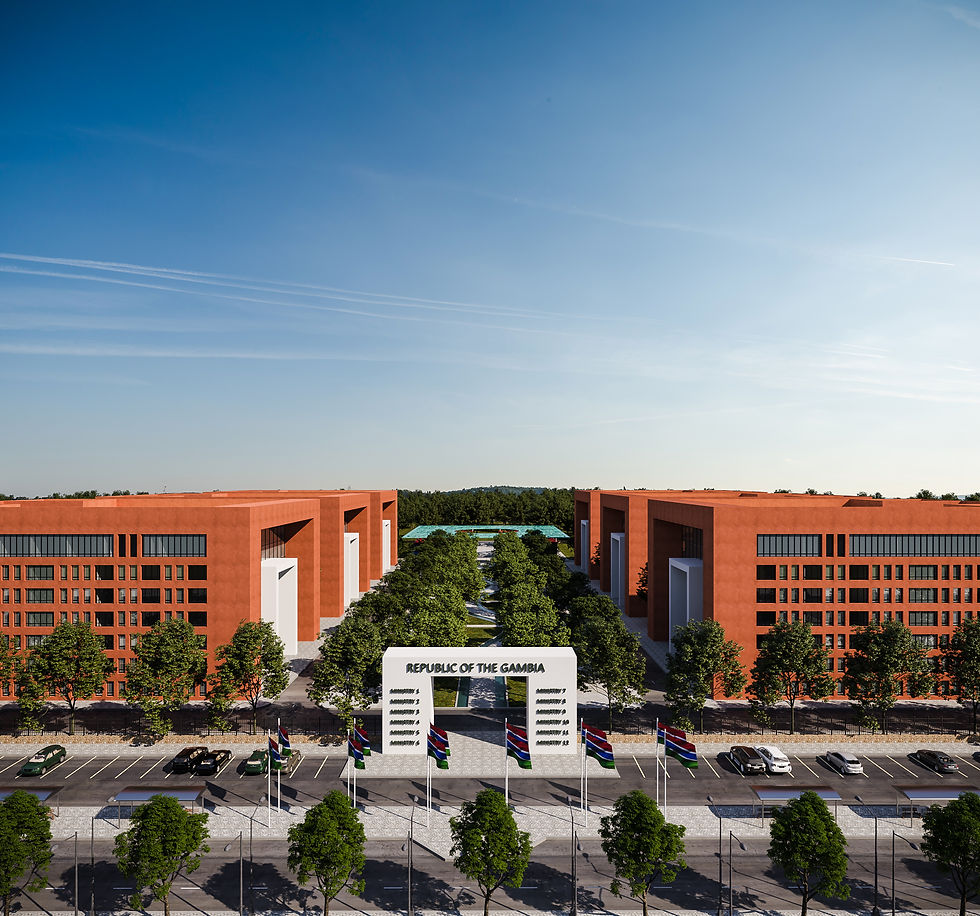 Ce projet d’envergure vise la construction d’une cité municipale en Gambie, un complexe administratif de 36 000 m² destiné à réunir l’ensemble des ministères du pays au sein d’un même site. Sélectionné pour sa conception ambitieuse et fonctionnelle, le projet est actuellement en phase d’exécution, en collaboration avec le bureau d’études IDC (International Development Consultant).